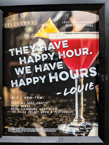 As others have said, best happy hour deals around, beats RTC hands down. This one is definitely smaller than the Bar Louie at One Loudoun in Ashburn, this was a former Bertuccis location so thats the reason there, and onsite parking is at a premium, Wendys next door will tow you if you park in their spots. The Crown Plaza hotel behind it is lenient letting you park there, as is the Kohls parking garage, plus there is plenty of street parking on Parcher Ave.