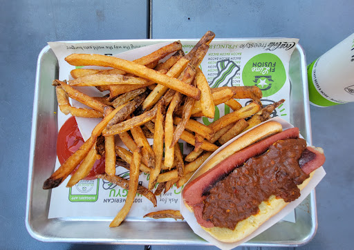 First and last time Ill eat there. I got a Texas Dog and small fountain drink. It was $9.00 and the hotdog was like chewing rubber!! The hotdogs from Burger King are better and $5.00 cheaper!! Plus my coworker placed the order and I had to make another trip back because they didnt give us the drinks we were charged for (online order/ to-go pick up order) The employee acted like he had no idea whether or not if in fact that we actually had ordered and were charged for the drinks when we ordered online. How could you not know? Update the system or something!! Not a good experience at ALL !!