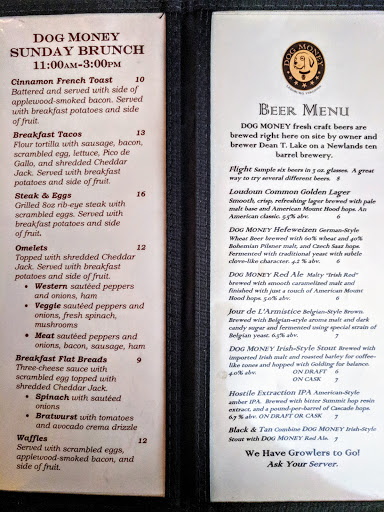 My wife, son and I went to Dog Money because of a recommendation of a friend. The greeter was very polite and took us to our table. The restaurant was basically empty. Our waiter, Gregory was very friendly and always eager to please. Thats it. The beer was only okey. The food was not that great. My wife got the fish and chips. She had to drench the fish with vinegar to add flavor to eat it. I had the cheese burger which was way too expensive for what it was and how it tasted. We got our 3 year old son the chicken because it is his favorite. He did not eat much. When I tried it, I dont blame him. Dry and flavorless. Luckily he had fries. My wife ordered the chocolate cake. She did not eat more than 4 bites because she did not like it. I was surprised because she loves Chocolate. I had one bite and agreed with her. Ive had better cake from Costco. We told our waiter we did not like it but he still charged us for it. Dog Money was the biggest waste of my money at a restaurant in a long time. I highly recommend avoiding this place at all costs. The only reason I give 2 out of 5 stars instead of 1 is because the pretzels were amazing!