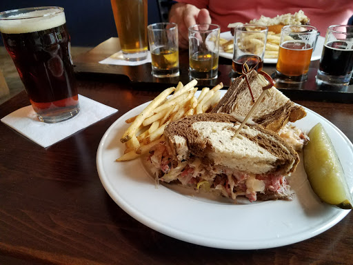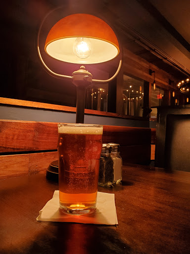 Great local spot for beer and food with pretty nice Happy Hour specials. Most of the beers are true to style and well executed. This is not the brewery if you are looking for something like a "Cucumber Cream Ale." However, if you can appreciate mostly easy to drink classic ales with an IPA or stout thrown in (along with the occasional barleywine or dopplebock) you wont be disappointed. Wine and cocktails are also available but beer is the main focus. The menu isnt overly large or exciting, but everything is well executed and there are usually good specials that can offer something interesting and different. They have some of the best fish & chips in the area and the reuben is very good as well. There is plenty of seating at the bar, in the restaurant and/or on the patio. When it gets busier there is a nice buzz but it never gets too loud for a conversation or to hear yourself think.