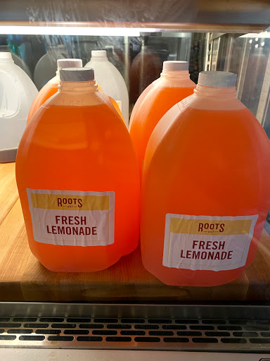 Smoked turkey and slaw on a gluten free bun with great hand cut fries. Also ordered the corn and crab soup. MMMM all great. Very pleased. Love the selected offerings of the store and the menu. Really able to focus on all of the great things. Staff is there is please and is of course knowledgable. Will definitely go back. Just recommended Roots to my daughter and family.