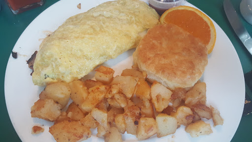 Really friendly service and great food. The breakfast portions were way bigger than expected and really reasonably priced. Great grits and omelets. The atmosphere is really nice and our server, Tiara, was super nice. Well definitely be back for more. We got 2 pieces of pie (blueberry/lemon and strawberry/rhubarb) to go and they look amazing.