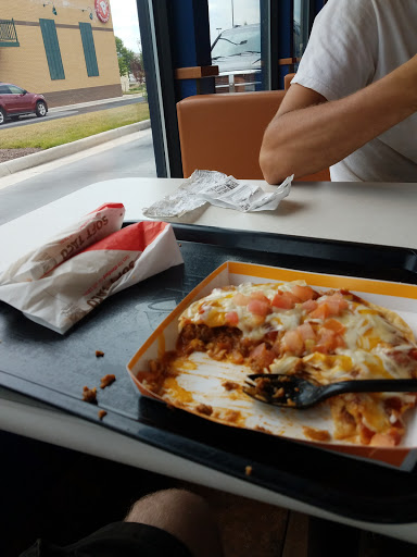 This was one of the dirtiest Taco Bells Ive ever been in. There was food and dirt on the floor, tables, chairs, even the windows. The condiment bar had spilled food and trash. They were out of napkins and despite 3 customers telling them, they still never replaced them. The drink station had trash, spilled soda, even lids stuck in the spill tray. The bathroom was dirty despite a worker coming out from just cleaning it. She told me not to use one stall because it was full of toilet paper. Why not fix it? The one that I had to use was dirty and the door didnt even close all the way. The food was normal Taco Bell food, just cold. Staff acknowledged me as soon as I walked in, smiled and polite, but then chatted amongst each other the rest of the time. They were more social than working. Dont think Ill be returning.