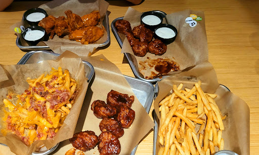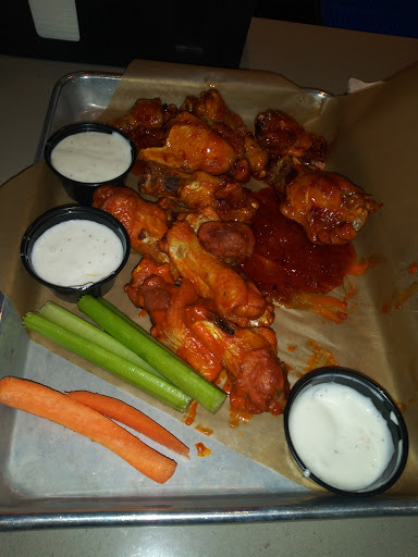 The food was good, but I did not eat wings. I had a side that was good, but the hamburger tasted like the kind you buy in the box with the pre-formed patties. Not my idea of a good deal when I ended up paying close to $20. There were some sketchy people hanging out in the front, looked like a drug deal, and the place was dimly lit. I did not feel safe or welcome. I saw maybe one or two employees, and was ready to leave quickly. There was limited parking, and it was awkwardly placed on a hill.