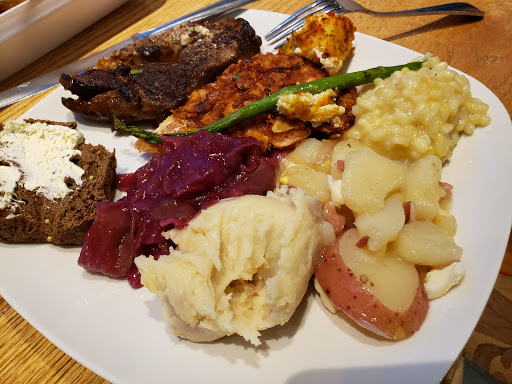 This was my first opportunity in months since moving from NJ to enjoy this place. I love German food. Wurst and schnitzel and pretzels and good beer with a side of relishes, mustards, and onions. Its a cuisine that Ive not had a lot of opportunities to try, aside from the amazing Newportville Inn in Bristol, PA, which I visited maybe five times, which was my exemplar. This place beats it. Culture is strongly represented here, in language, dress, and setting. I was here with family and new friends, and it could not have been a more welcoming setting. The Wurst Platter (pork, lamb, and veal?) was what I decided on, and it was a joy from start to finish the next day. My 11yo had the amazing crunchy pork chops with house made apple sauce, and loved them. My 8yo got the Hansel and Gretel Chicken, crunchy and divine. My cousin and her husband got the beautiful prix-fixe with delectable choices each. Joanna got a house special, a beef tenderloin that was positively falling apart with a generous heaping of sausage stuffing and fried onion straws. We all got to share all of the veg family style. Come heavy, because it aint cheap. Come hungry, cause it aint just a bit. But, I implore you, if you like fun delicious food, come.