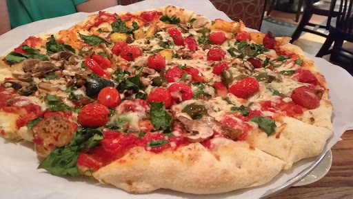 Thin crust veggie pizza was twice as big as one serving, but fresh tomatoes, onions, peppers, and squash were delicious. Prompt service made a nice stop on our way home.
