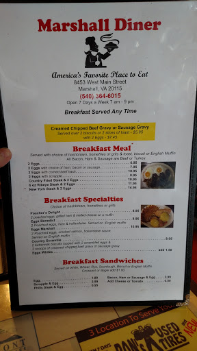 I had seen signs for it several times before and I had wanted to stop but I was usually caught up in trying to make good time. When I finally stopped by it was completely worth it. I forget what the main course was, but it came with mashed potatoes. They were potatoes that had been hand mashed. What a great surprise. I travel a lot and come across a lot of restaurants that try to be diners and have terrible, low quality food. Not my experience at Marshall Diner. Whenever Im on I-66 again I plan on stopping by for another great meal.