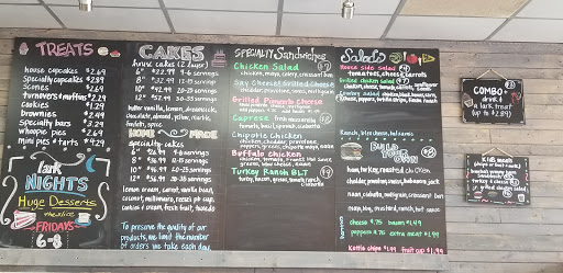 Great service from very friendly staff. The cakes are amazing! The variety of cupcakes never is disappointing. Even the lunch selection is great. We have tried just about everything they offer and havent had anything we didnt want to get again. like most local shops they make everything from scratch. So sometimes they sell out of our favorites but we just get something else cause we know we will be happy! You must try the chocolate chip cookies and the Saturday cinnamon rolls!!!