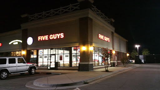 In my humble opinion, Five Guys makes the best bacon cheeseburgers. Period. Their fries and hot dogs are good too. This is a typical location (actually a big larger seating area than some we have been to) with seating, free peanuts, and a fairly efficient order processing line. Not the cheapest burger shop around, but in this case you truly get what you pay for in terms of quality, quantity and taste. They do a high volume so it is tough to keep the tables and floors clean, but the kids that work there try hard to keep up. We have been here maybe ten times over four years, as we traveled to Farmville. Not unusual for half of our caravan to grab food here, with the other half at eh Chick-fil_A next door. Its all good and helps make the road-trip that much more fun. Order large fries and see if you can actually eat the humongous bag full of fries that they give you. Excellent.