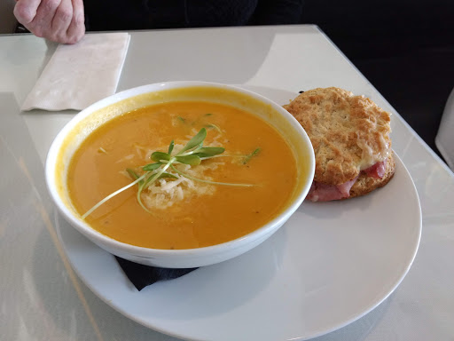We went for the bistro, not the bakery. From the looks and smells, the baked goods would be 5 stars. We ordered the daily special. Both items were good but not great. The coffee was good, with the hot caramel macchiato being tastier than the iced one. They have outdoor seating, which is very nice in good weather. However, the location is by a somewhat busy street, so there is a lot of road noise outside. Still enjoyable. The staff was friendly. Total time there was just under 45 minutes to comfortably finish a full meal.