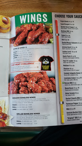 I think Quaker Steaks Arizona Ranch, Hot, and Buckeye BBQ wings are top notch. As someone before me said though, the Cajun flavor is atrocious. Although Ive never had horrible service, I will say the service is variable. Sometimes, I get really great service, and other times, its just adequate.