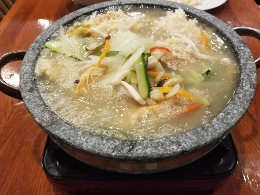 Friendly Korean restraunt with very tastey bulgogi bibimbap in the stone bowl and my wife had the buldogi soup in a clay bowl.