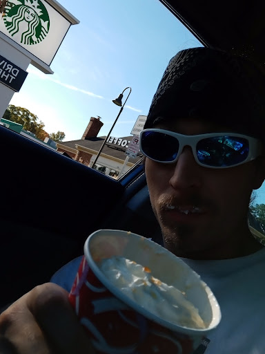 This Starbucks has a drive thru thats hidden behind the building (looks like an old bank), but its just like any other Starbucks. Lines are frequently long and coffee is good. It offers the standard fare of cold brew, frappucinos, and dark roast coffee. I havent had any major issues with this Starbucks except for one complaint. The drive thru speaker needs to be fixed or increased in volume. You can barely hear the drive thru order taker. I have to hang my head out the window just to hear the person taking my order.