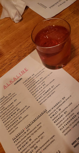 Normally I wait until Ive been to a place more than once to write a review, the exceptions are for the terrible & the outstanding businesses...this falls under the latter! Upon entering I recalled being told that Alkaline was upstairs FROM Pendulum Meat Market, not that they took over the shop when the meat market closed for the day! So I stood there looking around for about 10-15 seconds (felt like an eternity of embarrassment) before I was approached by staff & told I was in the right place haha after being seated I witnessed another group of people do pretty much the same thing, so its dinner with entertainment! I didnt care for their draught beer offerings, but appreciated the free taste so I didnt commit to a pint. I enjoyed a Port City Porter while I eyeballed the menu for what I was going to indulge in this fine evening. I kept coming back to the Taiwanese oxtail & beef tendon ramen. I wish I got my servers name, he was very helpful in describing different items & I took his recommendation of adding a soft boiled egg before adding some sweet pickles to the bowl & the spicy chili garlic oil on the side. Everything was as advertised... DELICIOUS!! It has taken me far too long to make my first visit to Alkaline, but I guarantee it wont be my last. The only minor complaint is the conversation that I was forced to listen to from the table next to mine & thats not the restaurants fault. I now know way more about these people & their personal lives than I care to share...it got pretty dirty & detailed smh