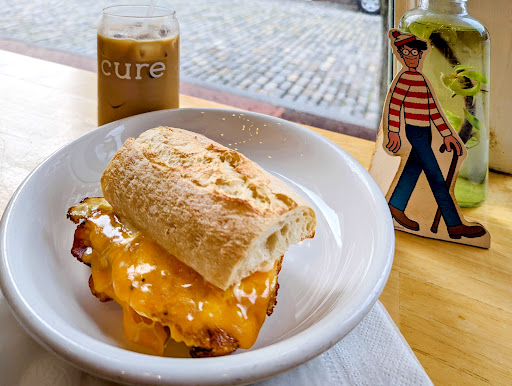 I was visiting in the area and found cure. Since then, I had to come back again! I tried the Cortado and a cappuccino, both excellent. The bagels are nothing to write home about, but the friendly staff, prompt service, and lovely location near a historic neighborhood make cure completely worth a visit.