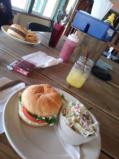 This is what you expect when you go to a dive bar. The food was good for a dive bar and the drinks where a good price. For starters we had chicken wings and jalapeno poppers. The wings were very good. They were crispy and juicy and had a nice kick to them. The poppers sadly were not very spicy but well cooked. I had the bacon cheese burger with fries. The patty was a good size and it wad cooked well. They toasted the inside of the bun giving it a nice crunch and helped the burger hold together. The fries were crispy and not over salted or seasoned. My husband had the surf and turf, which came with coconut shrimp. The shrimp tastes like they had been frozen but were still pretty good. The steak was cooked perfectly medium rare but could have used a little more seasoning. He ordered a side of hushpuppies and were very good. Crispy on the outside, light and fluffy on the inside. And you have to appreciate the view. Sitting on the water as the sun sets after a long day at work is very relaxing and beautiful.
