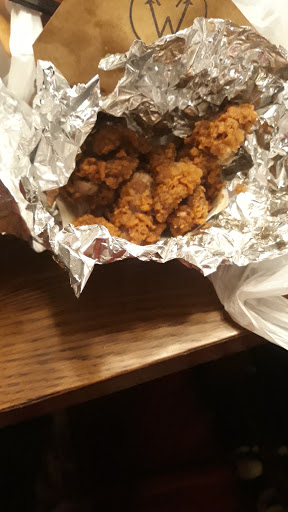 I stopped by for dinner solely based on reviews I read online. I was not disappointed with their chicken and waffles -- in fact, it was some of the best fried chicken Ive ever had -- but was let down by the sides. The corn bread was over-cooked and dry, and the macaroni and cheese was too soggy; both seemed to have been prepared *way* in advance and simply left under a heat lamp until passed along to the customer. Its also a good thing that I chose to enjoy my meal there, because I had to go back and ask for utensils (which should have been included with my bag of items). For the price, I think I prefer Chick-fil-A.
