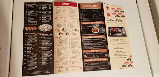 We have tried many Chinese restaurants in the HR area and Golden China is our FAVORITE. The service is always friendly and accomodating and the food is the best we have had outside of NYC. Eat in or take away. The menu is extensive but not expensive, and the sushi is well prerared and presented. The dining room is hidden from the street. When you go in, it looks to be like most other chinese take aways, but turn to your right and you will be pleasantly suprised by a beautiful salt water aquarium, cozy dining room and sushi bar.