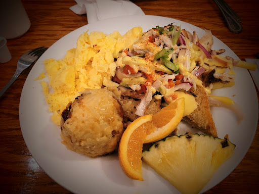 I went here because I was craving fish and chips, the other reviews were up and down so I figured Id give it a try. The fish that they fry is flounder. It was VERY heavy for fish and chips. They gave me a large portion, which was nice but I couldnt finish it; which is rare for me to not finish my fish and chips. The batter was really light and thin, not that flavorful. Overall it was just ok, I wouldnt order it again. My husband had the Cajun Grilled Catfish - Grilled sourdough, lettuce, tomato, Parmesan pepper dressing. He also thought it was ok, not flavorful either. The sandwich needed the dressing. The service was great. Our server was very friendly, patient and helpful. I would come back here to try their buffalo fried shrimp, we saw many people ordering it. They gave large portions and it looked delicious. There is ample parking here in their lot. This restaurant is family friendly with a diner experience.