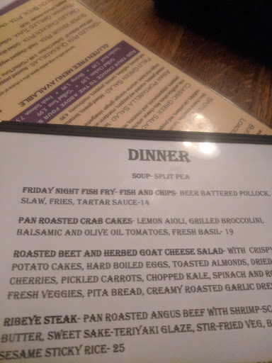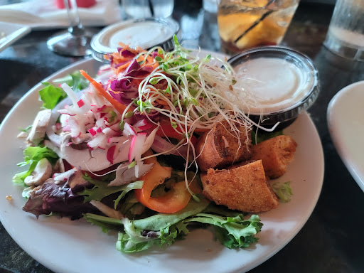 This place has been hit or miss for me the few times Ive been there. The service is always wonderful and the staff is friendly, efficient and very attentive to patrons needs! Prices are right on in my belief, and I think theres a good price point for everyone no matter what youre looking to eat or drink. I will say the salads are pretty spot on here and I honestly dont think you could go wrong with many if not all of the choices! I would highly recommend you try a salad for lunch or dinner here; fair prices and large portions. However, I will say all of this with a side a caution, I personally have tried a couple of sandwiches here and I believe the fish and chips and was less than pleased, especially with the sandwiches. Just dry cheap bread and okay meats. So to sum it up love the salads, but not much else. Still would recommend you explore the menu for yourself and give this place a try!