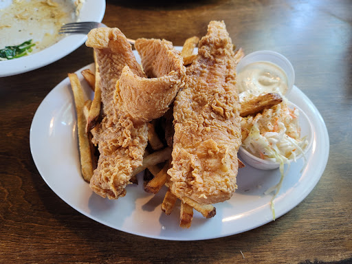 Should have known this would be a poor experience when as soon as we were seated on the half empty deck, the hostess said "umm let me see if I can find your server". Our food came out cold, after watching two tables had been seated after us, get their food. Server was unattentive and had to be asked three times for extra silverware after two of our sets fell on the floor. Then when she finally did bring them her remark was, "I rolled six when you got here, you just cant count!", and dropped them down. My wife had dropped a piece of lettuce with dressing on the floor before this, the server picked up the bleu cheese covered lettuce and threw it at my wife. I immediately asked for out bill and paid it on my card. My reciept was brought back by a different server, I then asked for the manager. After waiting 10 minutes for the manager that never came over, we got up and left, because we were on vacation and had other places we wanted to be. This place has about a 100 yards of docks before you get to the parking lot, mind you. As we were almost to the concrete pushing our one year old daughter to the car, the manager whom had been out of sight the entire time we were there, stops us and accused us of not paying our bill and threatened to call the cops after I had a few choice words for her about the service at her restaurant. I would give this experience zero stars if not for the bartender and the weather for the day. Overall Id maybe recommend going to have a drink at the bar for a sunset but dont order food, unless youre ok with paying $16 for fish and chips and $4 for a cold side of broccoli or any other side.