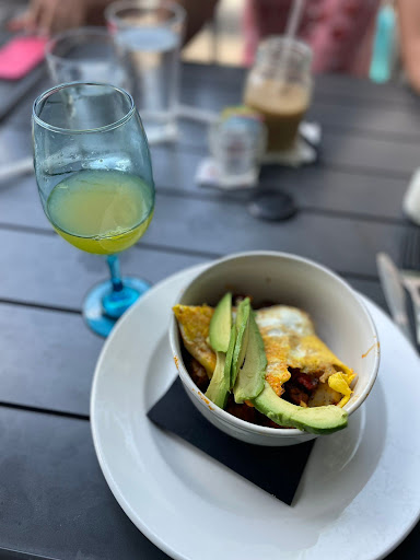 The atmosphere was trendy with a nice bar and television, but the staff was more distant than friendly, but that may have been my perception since there were several groups at tables discussing business ventures and not requiring as much attention. Menu items were appealing and my eggs with goat cheese and avocado was delicious. The server greets everyone with a mason jar of ice water and theres ample seating to accommodate small groups as well as seating on the patio out front.