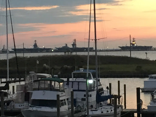 Find this little gem of a restaurant and watch the sunset over the Hampton Roads waters. Cf: The water area known as Hampton Roads is one of the worlds largest natural harbors (more accurately a roadstead or "roads"), and incorporates the mouths of the Elizabeth River and James River with several smaller rivers and itself empties into the Chesapeake Bay near its mouth leading to the Atlantic Ocean. We enjoyed an appetizer of smoked oysters and brie with perfect drinks.