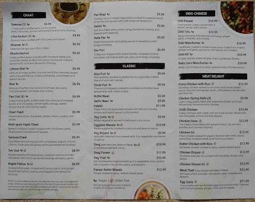 I have tried a good amount of items from this place. I am not going to try to spell them, but I love that they make it to the spicy level you request and everything is fresh! IMO - Chaat is a "cold rice cereal salad" it is Indian street food cuisine, you will be full before you finish a dish! ITS VERY ADDICTIVE!