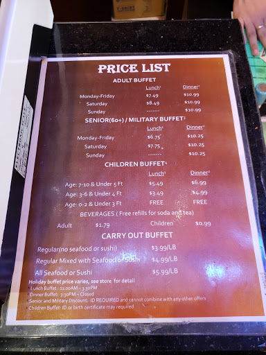 An awesome budget meal with a wonderful atmosphere and pretty solid food. Theres a hibachi spot in the back, they also do steak. These guys cater, serve a small beer and wine menu, and sushi is included in the buffet. Obviously its not all top quality sushi or steak, but Ive been to this place on multiple occasions and never had a problem with the food or staff. It is my go to pig out buffet in hampton roads.