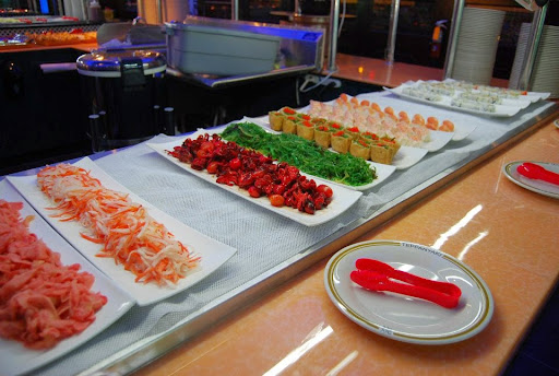 Typical buffet food...not that great. The place is never that busy and food is way over priced...some of the staff are slow and others come to check on you frequently (thats one of the few good things theyve got going for them). The sushi guy doesnt speak one word of English...that was a downer when I wanted to ask if he could make veggie rolls.