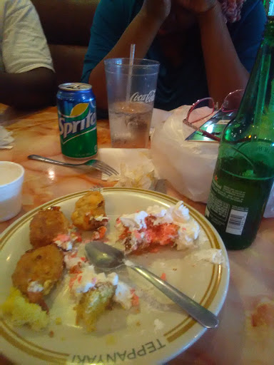 I was afraid to eat here because some of the reviews are nightmares but its not bad. Some of the sushi was dry from sitting out and some of the food was cold for the same reason but the selection is huge and the frequently chosen food was refreshed often and warm. The waitress seemed nice when we meet her while being seated but she didnt notice us again after that. All in all its self serve, cheap and theres enough good to choose from so Ill come again.