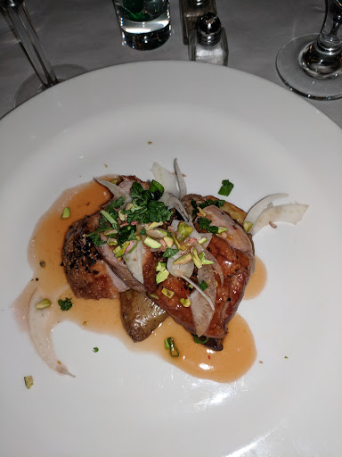 This place is very intimate and decorated with Vintage Theater posters. Soothing music playing in the background quiet conversation between people. A well-stocked bar with a lovely selection of wine and hard alcohol . Had a whiskey sour that was made just right. Wonderful service without being too overbearing but attentive. The food is absolutely to die for. Being able to taste every intricate spice used with all the flavor to savor. The crab bisque is by far the best Ive had in Virginia Beach, everywhere else drowns it with too much Sherry. The duck was made so tender and moist with the skin perfectly crisp. Their in-house made chocolate mousse made my mouth water. The creme brulee caramelized top was cooked just right to have the right amount of smoky taste the didnt overpower it. The lemon sherbet sorbet had a wonderful sweet tart that gave me a good Zing. Everything about this place I absolutely adored I look forward to eating here again.