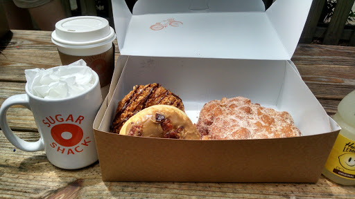 Love Sugar Shack! Great simple glazed doughnuts but also awesome specialty doughnuts that are never the same. This location is cool as well, as they left some of the older features of the building untouched but with a nice modern feel inside. Not much seating inside, but there is plenty of parking. Wont break the bank either, like some other specialty sweets places.