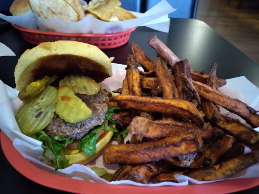 What a great find! My family of four loved it so much that we ate 2 meals there on a short weekend stay. The hamburgers were amazing--not your typical skinny meat patties. These are thick, juicy, and taste like you made them on your backyard grill. We added the swiss cheese, mushrooms and bacon and it was truly the best hamburger Ive ever had. The Wise guy (3 patties) was nearly unfinishable (my son ordered it)! We also ordered the sweet potato fries and they were thick, fresh, and delicious. You can get sugar or salt on them--either way is amazing. The ice tea was the perfect complement to our meal. The service was wonderful and the the restaurant was bright and cheery. HIGHLY RECOMMEND!!!!