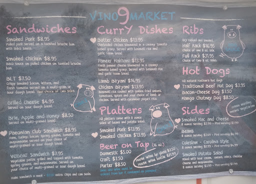 Vino 9 is a quaint historic little market with fresh made food, a wide variety of wine & beer for carryout & on-site consumption, snacks & other goodies. They have an adorable, eclectic patio with plenty of seating and frequently a bon fire. Very cozy, informal setting with interesting decor. Occasionally there is live music on the patio or in the recently finished colorful basement bar. It is a great stop for a meal or drink, and great place to stock up.
