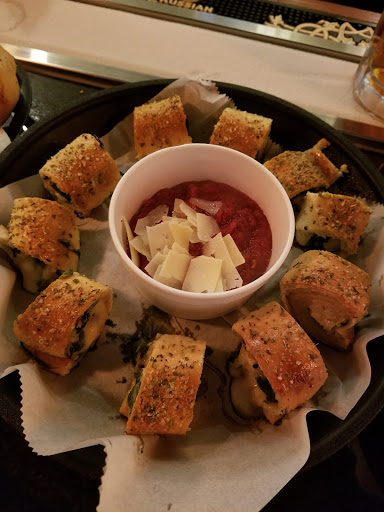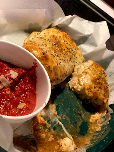 We stopped in for lunch on a Wednesday and they were pretty busy. Its very clean and well decorated. The bathrooms were spotless!!! The service was great and our server was super friendly. We both ordered 2 slices of pizza which were HUGE! We could only eat one. We also ordered garlic knots that we were hoping wouldve come out before the pizza but instead was about 5 minutes after. Oh well. Everything was piping hot and tasted fresh. BUT!! The "marinara" sauce for the garlic knots tasted like crap! It was so freaking bland it was as if someone opened up a store brand can of tomato sauce and poured it in a bowl. Honestly, Ive had better pizza too but I think all pizza tastes pretty good when its right out of the oven. Id go back and try something different.