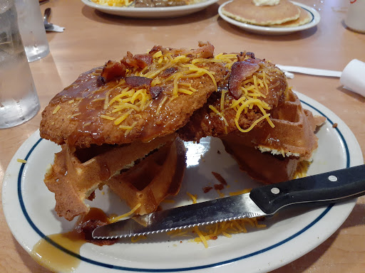 Going to IHOP you expect to be 30 to 45 minutes on getting your food but when you wait 30 or 45 minutes to place your order and then your food comes back wrong there is really a problem me and my girlfriend went to IHOP over the weekend the waitress bought my girlfriend silverware it was wrapped up in a napkin with the little napkin holder around and the knife still had grits on it I dont know whether the waitress picked up the wrong plate but I asked for my eggs to be scrambled and she brings me back eggs with cheese and my pancakes were hard hash brown was cold the hottest thing on my plate was my coffee whenever I am in PortsMouth again I never have to worry about me eating there ever again