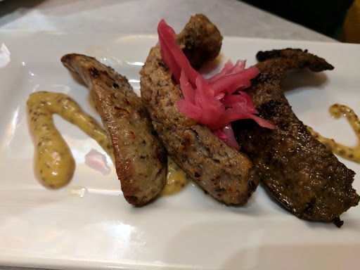 Outstanding Prohibition era whiskey bar and TAPAS restaurant. Ive been here three times and seen all the same staff. Thats a great sign. Not a lot of staff turn-over usually means a very well run establishment. Tapas = Small food portions. Highly recommend you come to this place with a) friends/date b) about 2 hours to kill. The atmosphere here drives meals that are spread out. Recommendation: This is the kind of place where, if youre feeling ambivalent about what you want to eat, you can let the chef pick your plates. Ive done this twice and gotten an awesome diversity of great foods. Pros: Staff, Food, Social atmosphere. Cons: They can really crank the A/C sometimes. Bring a light jacket.