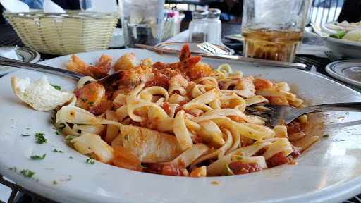 First off- our server was great. She was busy with us as well as a larger party of 10 that came in after us, and another small party, and still we never lacked for anything and she was very pleasant. The sole reason for the poor rating is the food. VERY over-priced and not good. CERTAINLY not worth the price. My sons kids spaghetti with meat sauce was over cooked mushy pasta in a bowl of red water with chunks of meat on top. My husbands burger was cheap, dry meat topped with a single slice of plastic-like American cheese, and condiments came in packets. The onion rings on top of the burger were floppy, grease-soaked, inedible nonsense, and his fries were a similar grease-soaked mess. He said a burger and fries from Wendys or McDonalds would have taste better and cost 1/4 the price. I had the shrimp fra diavolo over fettucini. A $17 dish that was barely palatable. Over-cooked and rubbery shrimp that tasted like nothing but chlorine, and the chlorine taste overwhelmed the whole dish- including the water-logged pasta. I could SEE crushed red pepper, crushed garlic, and onions, but could not taste any of it. My husband and I worked in the restaurant industry for years so we know exactly what causes such disaster dishes- friers under temp, poor quality ingredients, and par-cooked pasta that is refrigerated all day then tossed in barely steaming water to warm it up for each serving. We will not be back.