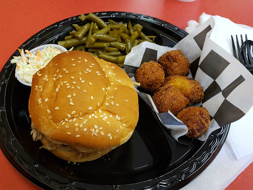 Fantastic small BBQ with big southern heart. Best local BBQ Ive had since Smokey Pig closed. Homemade sauces, potato salad that is not too heavy, best baked beans Ive had in I dont know how long, and hush puppies to die for (they are savory, not sweetened). The sweet tea wont ruin your teeth, they have unsweetened as well, the meats are smoked to perfection, and did I mention the homemade sauces? And the baked beans? And the hush puppies? So yummy!! You can sit in or carry out, and they cater to large and small parties. A real winner for the local BBQ scene!