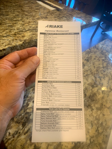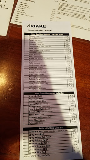 From the outside-in the place is a winner. It is amazing just how good former fast food establishments can look with a little TLC. Inside is very nice bordering on beautiful (yes, bathrooms too) with absolutely no hint of former incarnations. Ambiance is relaxing, staff knowledgeable, pleasant and attentive without being invasive. All together an excellent dining environment. I like my little spot at the end of the sushi bar where I can lust in my heart over the numerous varieties of beautiful, beautiful treasures from the sea. From this vantage point I marvel at chef Aokis talents - he is truly a master. Ordering standard sushi/sashimi fare results in a beautiful presentation of the tastiest delicacies. If you are lucky enough to visit on a slower-than-usual night, ask Aoki to surprise you - whatever you are served will be great, but then as your palate becomes known to him, well, hmmm, uh, heaven can only dream of being this good! I know Ariake has a kitchen, and I know the few things Ive had from the kitchen are outstanding, but its the sushi/sashimi and Aokis talents that bring me back oh so often. Ariake also has other sushi chefs and their work is superior too - even if Aoki had the audacity to take a night off Im never disappointed with Ariake. Oh yeah, try the sake too!