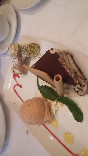 This was a wonderful experience! I was treated here on a date for my Birthday this month. Reservations were very easy to make online, entering a time and the available seating came right up. We were shown our table right away and service wasnt far behind. The whole time we were deciding on what to order this cart with several amazing looking desserts kept rolling by. I very much liked that you could choose a full or half portion of pasta as I still had to take home some of my half portion! The bread and oil were amazing as well as the Brushetta. Even my date who doesnt like Brushetta tried some and enjoyed it! Our meals came out and even though we were full on great food we still splurged for dessert. It was a memorable night and a beautiful dinner