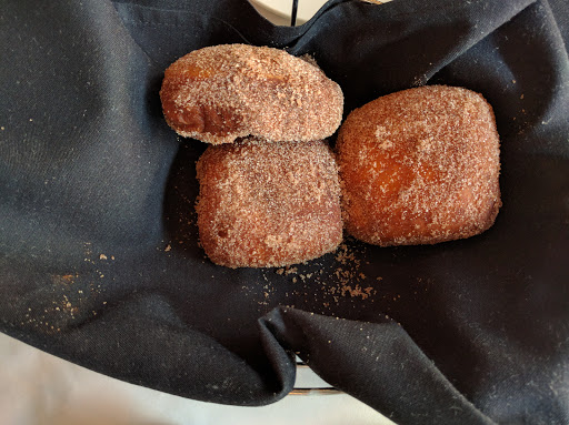 Brunch review. Food : Good Service : Meh Live music : Great Atmosphere: Depressing :-/ The menu looked great, while I prefer a buffet for brunch the drink menu was original here and the food descriptions looked like original takes on the classics. Im all about more options for brunch in the suburbs and this place has a lot of potential. In my opinion, wait staff should be trained more, quality checks done on the food, and then itd (maybe) be perfect! There were only 4 groups of people including us in the entire restaurant for brunch at 12, so that was kinda sad :-/ but the food did come super fast. Steak and Scrambled Eggs: Decent, not great, not bad. Just Meh. Hot cinnamon rolls: only $1.00 for 4 of these delicious hot cinnamon rolls- no sticky sauce just like fresh made donuts! Highly recommend- try one without butter first. Oatmeal Brûlée: this was really tasty. I dont think it was healthy but I dont think thats what they were going for- this dish was a big bowl and really good. Two sunny side up eggs: this is hard to mess up but one of my eggs came to me broken open already. Side of toast: this was like jumping hoops here, apparently they dont "do" toast. But they attempted to fulfill my request for whole wheat toast by serving me rye toasted bread. While this will do the trick the issue was it came BLACK, like burnt black. 1) seriously? And 2) are there no quality checks being done at all before food is presented? The service was maybe what to expect at M&S grill but we were still a little shocked. Sauce was poured on steak without the inquiry of wether or not we were even interested in the side sauce. Dishes were removed in the most uncouth manner, knives kept falling all over the place, and he laughed and apologized. Butter dishes from the appetizer of (yummy) cinnamon rolls were left sitting on the table for the duration of the meal. While the waiter poured water he didnt think to look at what he was doing so a giant group of ice cubes spilled over into the cup, causing water to go everywhere. And the waiter served burnt toast. Why would you serve burnt toast? The lives blues music was really good! But they did stop playing half way through. I say try it for yourself, you may love the brunch drinks and unique menu! As for us I think well stick with other RTC Brunch spots.