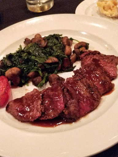 I never write reviews; I think this is the first Ive ever bothered with. But, this was something to write home about. This was the best meal Ive had in a very long time. Everything was absolutely delectable. From the delicate bread roll at the start, to my spinach salad perfectly balanced with flavorful bacon (not too crispy, not too salty, not too fatty--just right) and tender crumbled eggs with vinegarette (sp?) dressing, to the heavenly mashed potatoes--I felt like Id be happy if this was to be my last meal. I didnt even get to my baked shrimp, although I could see they were really culinary winners. I really wanted some Kahlua chocolate cake or the truffle cake or the apple pie bread pudding-thing, but I thought Id have to stop before dessert (this time) or else Id ruin the whole dream. We got one of those semi-circular booths, which I love. But the interior finishes and design wasnt my absolute favorite, but thats alright. I think there were some lithographs of horses on the back wall of the restaurant (didnt get a close enough look), which I think is great, but I thought they were kind of small in scale/size for where they were located/hung on the wall. The green wall paint is not good; not a good color. Some higher partitions between the rows of booths--whether glass or screes, or whatever, would have been good; there is just not enough variety vertically. Its like the the restaurant interior was cut at 42". Whatever. Our booth, was on the other side of the bar, behind a floor to ceiling wall, so it was probably one of the best places in the house, unless youre into window seats. Great place. Looking forward to the dessert next time. Just change that awful green paint.