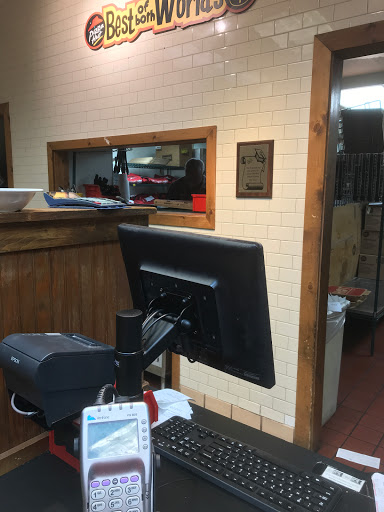 Atrocious food and atmosphere - pleasant server: I dined-in at the Reston Pizza Hut this evening and I issue this warning to my fellow googlers.... STAY AWAY! We traveled to this Pizza Hut because it is one of the "Wing Street" locations that in the commercials, claim to stand up to real deal in Buffalo, NY. I promise you they do not. Im not sure who P.Hs supplier is, but these were surely, the smallest and lowest quality wings I have ever seen. Many of the wings had broken bones, which are both a choking and broken tooth hazard. There were irregular chunks of skin, connective tissue and fat that would normally be trimmed from regular quality wings. AWFUL, JUST AWFUL. Laughably... we went in for the wings and ordered a medium pizza as an afterthought. The kitchen forgot or our wing order and after a pretty substantial wait, our server arrived with our pizza and an apology (he really was a nice guy), the wings were forgotten and just going in now. The bathrooms were disgusting. I think someone actually decided to vandalize the mens room by peeing on the walls. No joke: there were droplets everywhere.... too far away from the sink to be just water. There were numerous flies buzzing about the restaurant. They bit at our legs as we ate. Awesome.... I tried to be in good spirits about the whole experience... mostly because, as I said, I thought our server was just the salt of the earth, especially with all of the other nonsense that was going down around him. However, I did almost lose my cool when I went up to the register to pay and the manager did not say hello, look me in the eye or ask how everything was. I did want her to know how bad everything was in her restaurant and offer to offset our bill in some way. Instead she looked the other way and stretched out her hand to take my check and card from me (*snubbed*). Her demeanor was was notably and intentionally rude. All in all a bad experience.
