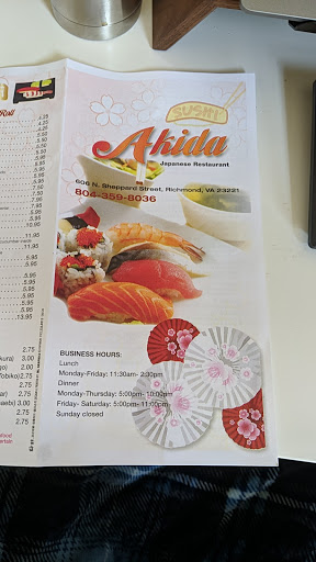 Akida is my neighborhood go-to for takeout Japanese food. Emphasis on takeout. For what they charge, the portions should be larger or the service better, something - but it is what it is: a neighborhood Asian restaurant for when Chinese food gets old. Is it great? No, but its still pretty darn good. Is it good value for money? Not if you eat there without an expense account - if you have an expense account, there are better places to go in town. Drink prices are extoritonate! A bottle of Kirin or Asahi is $5. A Sapporo can is $8 - Order takeout and grab a 6-pack across the street or at one of the other convenience stores nearby. If youre a sake fan, its not so bleak . prices are more reasonable and the selection isnt bad. The sushis decent, but the tonkatsu-don (pork cutlet on rice) and unagi-don (eel on rice) are excellent. The pork isnt fried until its like jerky, and the light touch with the frier extends to the rest of the menu. The eel is great, and the portions are good - but whats essentially a bowl of rice with a pork chop on top (or a few slices of eel) costs $10 or $15, depending on whether you get pork or eel. The "salad" is just iceberg lettuce with French dressing or peanut sauce on top, and the miso is instant. Service is rushed; more than once Ive ordered some edamame as an appetizer only to have it come out at the same time as my entrée. By the time I finish the edamame the miso is lukewarm, and the pacing of the experience is just - off. Its rushed, at best. Drinks are expensive! Unless youre a sake freak, get takeout, and buy some Kirin ($5) or Asahi ($5) or Sapporo ($8 [!] - I thought it had to be a typo, even a clip joint of a karaoke bar in Annandale didnt charge that much for a beer) somewhere else. I usually try to find a bar seat; sometimes the sushi chefs will hand you a piece of sushi/sashimi gratis - a welcome exception to the prices they charge. Try ordering take-out and eating it somewhere nearby - the neighborhood around the new location is much more accommodating than the old Robinson Street hole-in-the-wall. Find a bench, have a picnic. Brown-bag it if youre not interested in meeting RPD for drinking in public. Im inclined to give it three stars, it gets an extra star because they know how to cook pork. (For comparison, when I ordered tonkatsu from a place in Mesa, AZ, I got two massive slabs of leather and some barbecue sauce. That might say more about Arizona than the restaurant, but good pork is good pork) I havent tried any other Japanese joints in RVA, but I have elsewhere, and Akida suffices for what it should be: a takeout place.