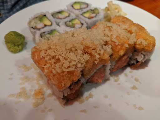 Were from NY and I guess a little spoiled, because we really like sushi and have been to a ton of various sushi places. We stopped for a night in a hotel in Richmond, decided to find some sushi, read the raving reviews about this place and decided to check it out. What we liked: small, cozy place. Got a free and very tasty appetizer. Nice green tea. What we disliked: Poor neighbourhood, a few folks around the place looked homeless. The fish isnt fresh. In fact, its pretty stale. The rice isnt good sushi rice. Its better than costco sushi rice (which is the worst), and its edible, but its not enjoyable. The rainbow roll cost $10+ and was really not worth it, the spicy tuna roll was really bad, probably the worst Ive had, and I have had plenty of bad sushi... Oh, and to my great surprise, the green tea, which is always a must in sushi places and is *always* free, actually cost like $2.75! That just amazed me... I dont know, maybe I am spoiled by NYC sushi... Anyway, to top it off, the restroom had a square foot of mold growing on the ceiling, the toilet wouldnt flush and I was lucky enough to get the last few sheets of paper towels. We paid $62 for two people - way overpriced.