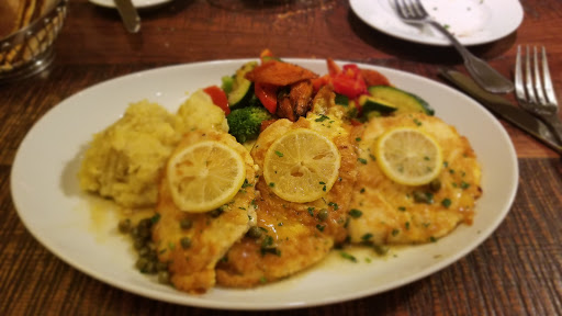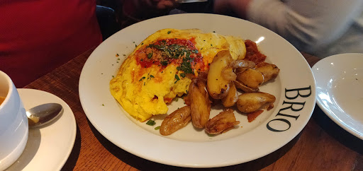 We had dinner at Brio Tuscan Grille. I have been there twice before and had good experiences, I may even go back, but they were off this time. We ordered from the Prix Fixe menu. Kathy had the Bistecca Salad and Chick Limione and Mini Chocolate Cake. I had the Lobster Bisque, Artichoke encrusted Pork Chop and the Tiramisu. They seated us outdoors even though there was a really ominous black cloud. They assured us if it started to rain, they had everything under control. Not to worry about anything on the table, just go inside and they would find somewhere to seat us. We ordered our drinks, the bread service arrived ( good bread), and the starters were delivered as the rain hit. A manager appeared, said, grab what you can and follow her. So we each got a starter and a wine glass. She re-sat us. We didnt see our waiter for ten minutes. I asked him for another water, that was another five minutes. They did not replace the bread service. When the food came out the pork chop was like dry cardboard. The deserts were good, the starters were good I tasted Kathys Chicken Limone and it was so so. Price before gratuity was $84.75