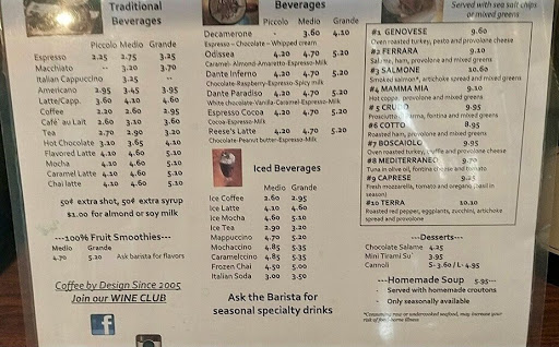 Best coffee in town. Delicious cappuccino served in a mug. Interesting place to hang out. Nice Italian plates and sandwiches. Wine beer and other beverages too