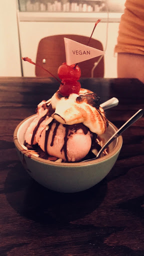 It was adorable in all its detail and lots of sitting room. The flavors were intensly delicious! Im not vegan and tried a couple of flavors but their vegan Thai ice tea has me thinking about it 3 days later. I got cardamom when I was there but Im going back for Thai ice tea with a roasted marshmallow top. Also, they have gender neutral bathrooms.